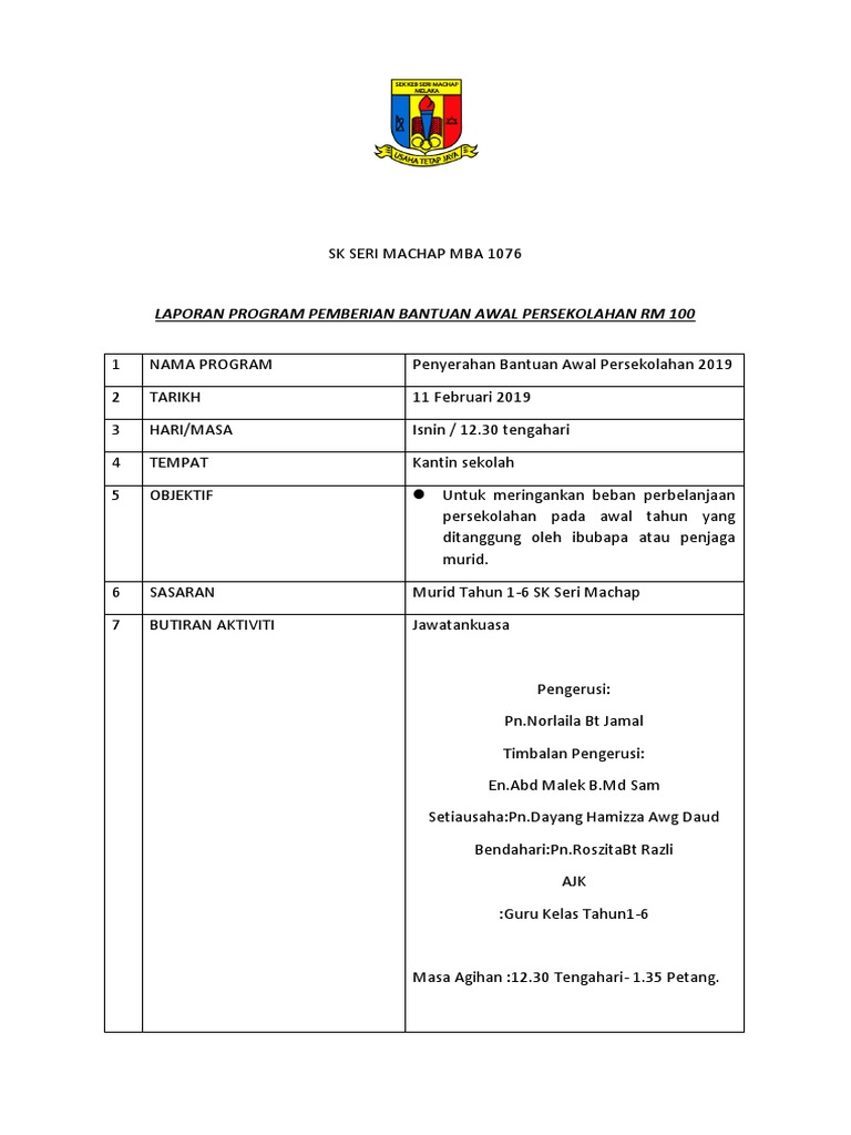 Laporan Bantuan Awal Persekolahan Pdf
